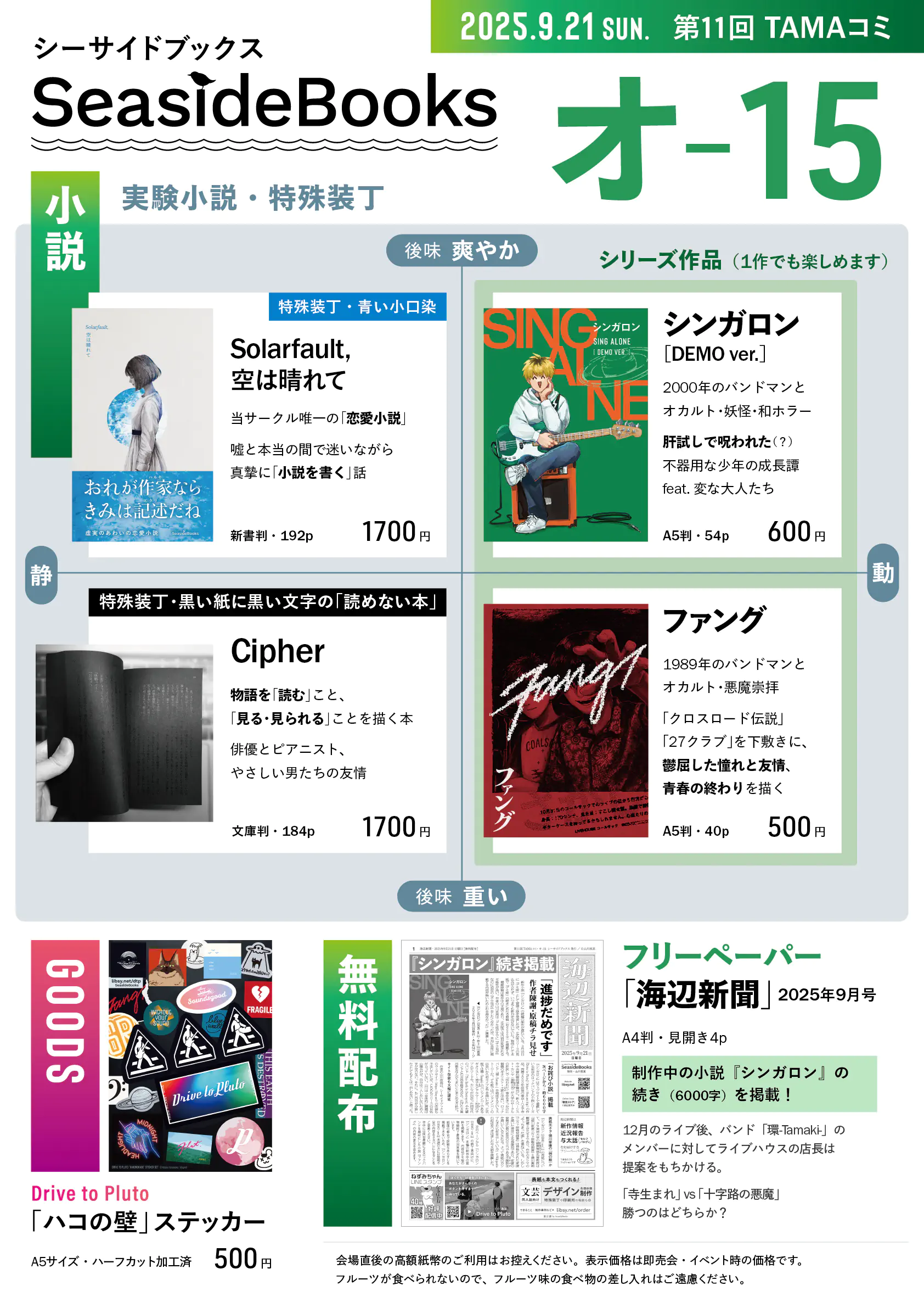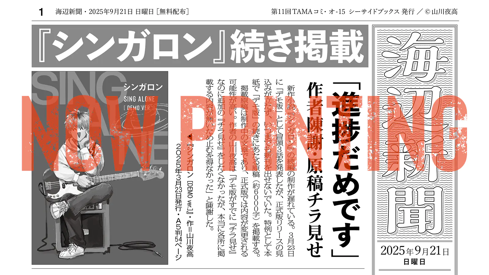 本書『シンガロン[DEMO ver.]』末尾のシーンからの続きを、フリーペーパー「海辺新聞」に掲載します。