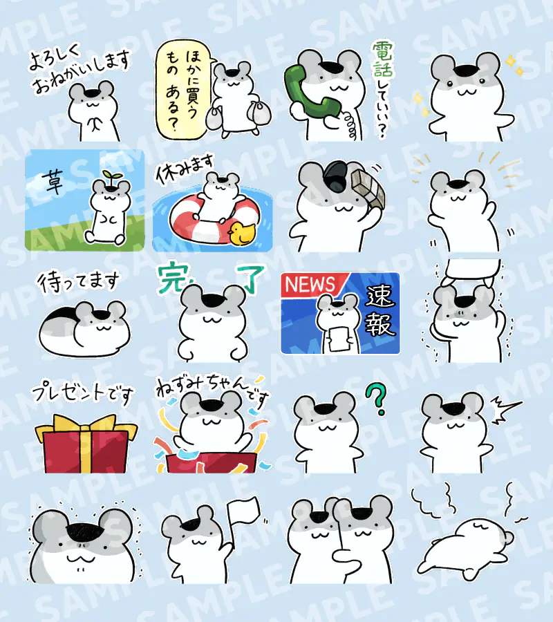 ねずみちゃんLINEスタンプ2配信(2019年ぶり2回目) category : 創作 tags : ねずみちゃん posted : 2026/02/18 ねずみちゃんのLINEスタンプ第2弾を配信しました。2019年ぶり2作目です。よろしくどうぞ。 無表情のねずみちゃん 2 – LINE スタンプ | LINE STORE 山川夜高のLINE スタンプ一覧 https://store.line.me/stickershop/author/874825/ja 広告 (SPONSORED LINK) サンプル 特徴・前作からの改善点 線が全体的に太くなり、白い縁取りも太くしました。ダークモードの画面でも文字の可読性が増しました。 前作時点よりも絵柄がもちもちになりました。 鳥もいます。かわいいです。 負の連鎖をする絵柄もあります。 新作スタンプはこちら 無表情のねずみちゃん 2 – LINE スタンプ | LINE STORE 山川夜高のLINE スタンプ一覧 https://store.line.me/stickershop/author/874825/ja 前作の「無表情のねずみちゃん」も引き続き配信しています。 リリース:ねずみちゃんLINEスタンプ ほか